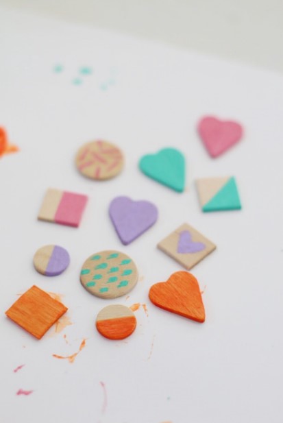 Step 1: Paint your beads. Part of the fun of this kit is that these wooden pieces are unfinished which gift your bracelet maker free reign to create something totally original! Apply two coats of paint and let dry completely.